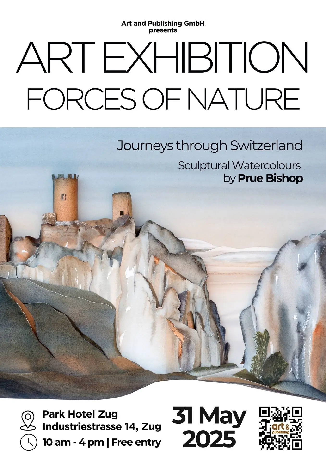 Am Samstag, den 31. Mai 2025, 10:00-16:00, lädt die international tätige Künstlerin Prue Bishop zu einer exklusiven Tagesausstellung ins Park Hotel Zug ein. In der stilvollen Umgebung des Konferenzraums „Symphonie“ präsentiert sie 20 originale Werke in ihrer charakteristischen Technik Sculptural Watercolour® – einer einzigartigen Verbindung von Aquarellmalerei, Struktur und skulpturaler Tiefe.